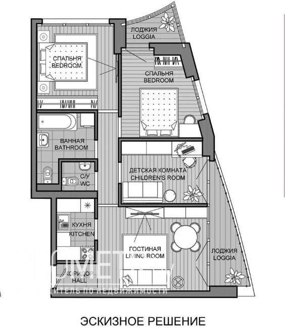 Квартира на момент ввода является однокомнатной с возможностью разделения на комнаты по индивидуальному проекту будущего собственника.