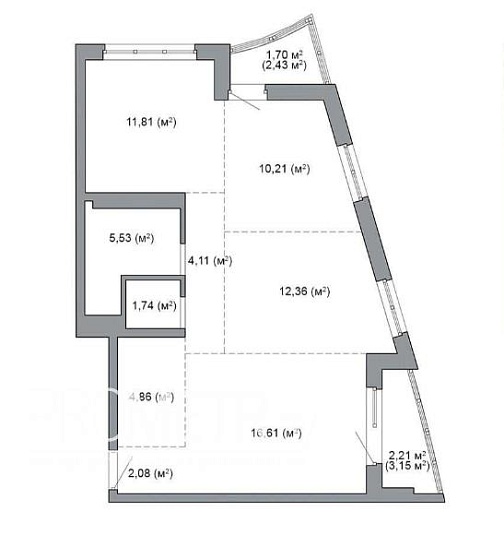 Квартира на момент ввода является однокомнатной с возможностью разделения на комнаты по индивидуальному проекту будущего собственника.