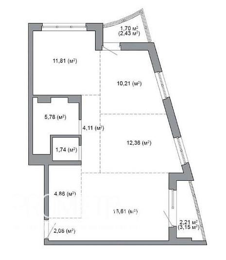 Квартира на момент ввода является однокомнатной с возможностью разделения на комнаты по индивидуальному проекту будущего собственника.