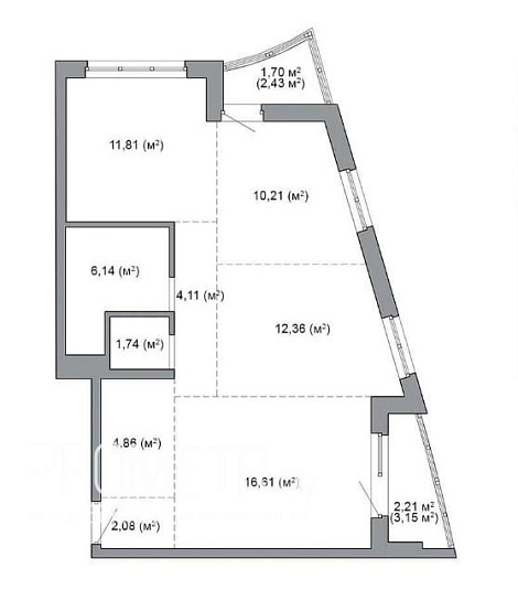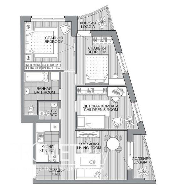 Квартира на момент ввода является однокомнатной с возможностью разделения на комнаты по индивидуальному проекту будущего собственника.