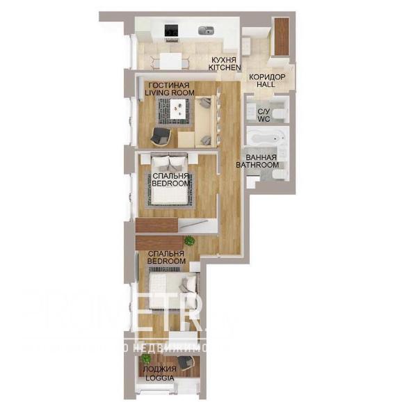 Квартира 65 кв.м. в свободной планировке, дом сдан.