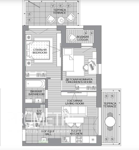 Квартира c террасой с выходом на стилобат