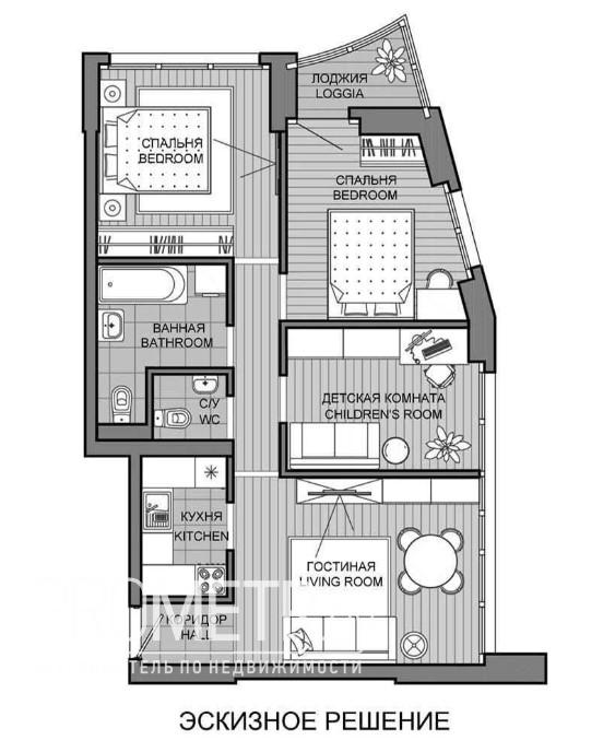 Квартира на момент ввода является однокомнатной с возможностью разделения на комнаты по индивидуальному проекту будущего собственника.