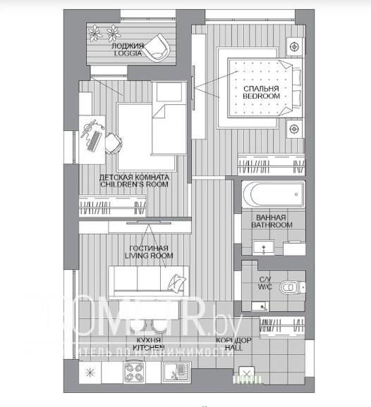 Квартира без отделки, на момент ввода является однокомнатной с возможностью разделения на комнаты по индивидуальному проекту будущего собственника.