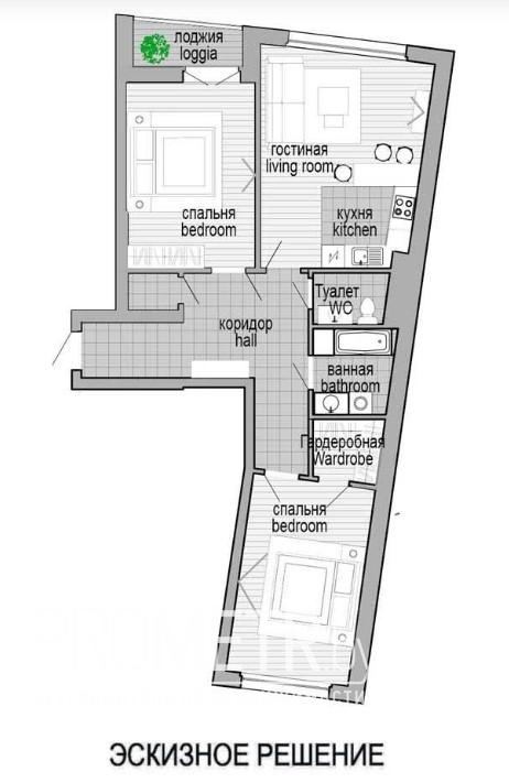 Квартира на момент ввода является однокомнатной с возможностью разделения на комнаты по индивидуальному проекту будущего собственника.
