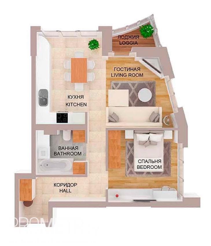 Квартира на момент ввода является однокомнатной с возможностью разделения на комнаты по индивидуальному проекту будущего собственника.