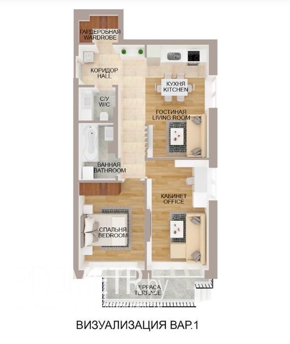 Квартира на момент ввода является однокомнатной с возможностью разделения на комнаты по индивидуальному проекту будущего собственника.