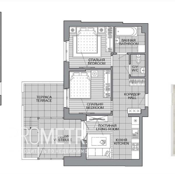 Квартира на момент ввода является однокомнатной с возможностью разделения на комнаты по индивидуальному проекту будущего собственника.
