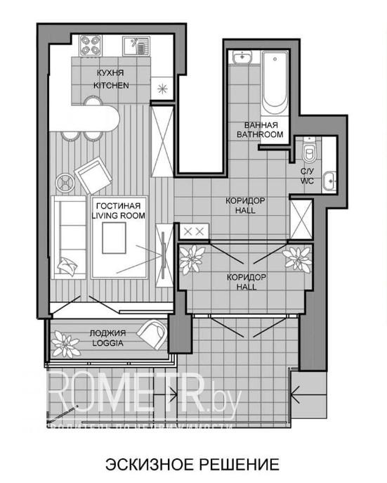 Квартира на момент ввода является однокомнатной с возможностью разделения на комнаты по индивидуальному проекту будущего собственника.