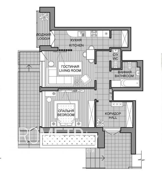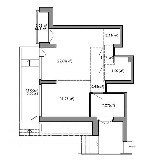 Квартира на момент ввода является однокомнатной с возможностью разделения на комнаты по индивидуальному проекту будущего собственника.