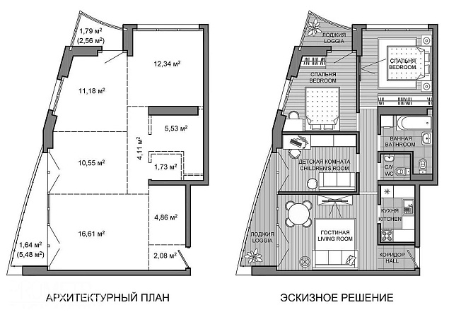 Квартира на момент ввода является однокомнатной с возможностью разделения на комнаты по индивидуальному проекту будущего собственника.