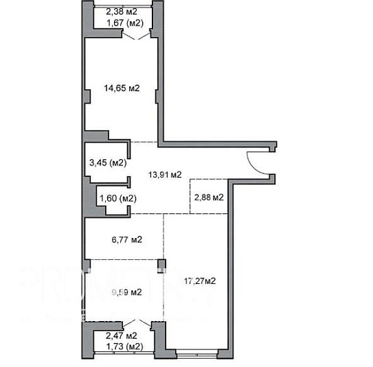 Квартира готовая 74 кв. с гардеробной, возможное количество комнат 3,