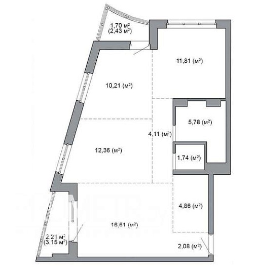Квартира на момент ввода является однокомнатной с возможностью разделения на комнаты по индивидуальному проекту будущего собственника.