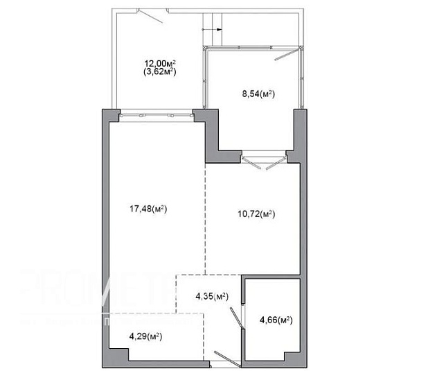 Квартира на момент ввода является однокомнатной с возможностью разделения на комнаты по индивидуальному проекту будущего собственника.