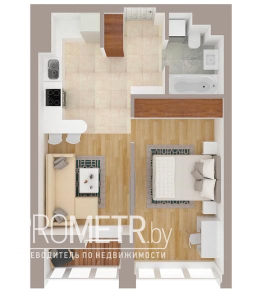 Квартира на момент ввода является однокомнатной с возможностью разделения на комнаты по индивидуальному проекту будущего собственника.