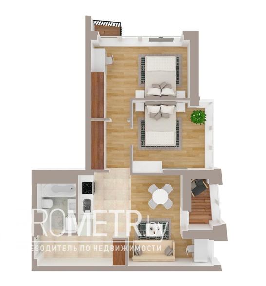 Квартира на момент ввода является однокомнатной с возможностью разделения на комнаты по индивидуальному проекту будущего собственника.