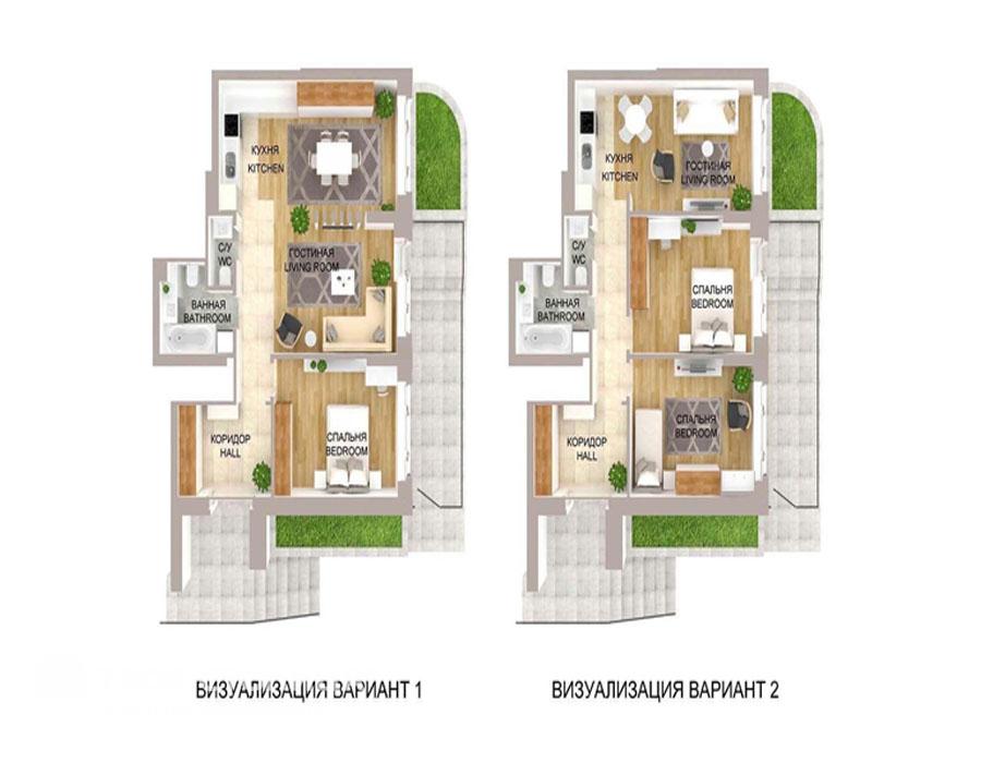 Квартира на момент ввода является однокомнатной с возможностью разделения на комнаты по индивидуальному проекту будущего собственника.