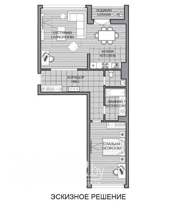 Квартира на момент ввода является однокомнатной с возможностью разделения на комнаты по индивидуальному проекту будущего собственника.