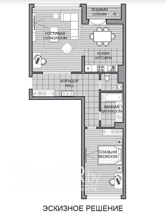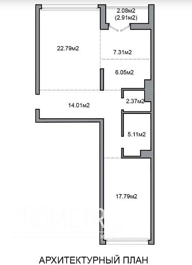 Квартира на момент ввода является однокомнатной с возможностью разделения на комнаты по индивидуальному проекту будущего собственника.