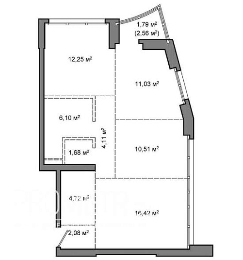 Квартира на момент ввода является однокомнатной с возможностью разделения на комнаты по индивидуальному проекту будущего собственника.