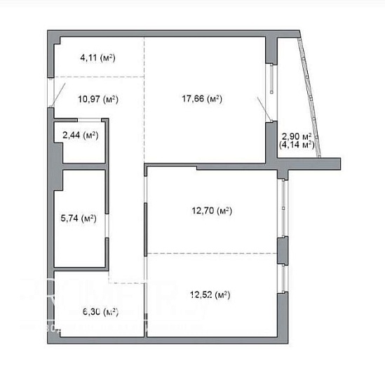 Квартира на момент ввода является однокомнатной с возможностью разделения на комнаты по индивидуальному проекту будущего собственника.