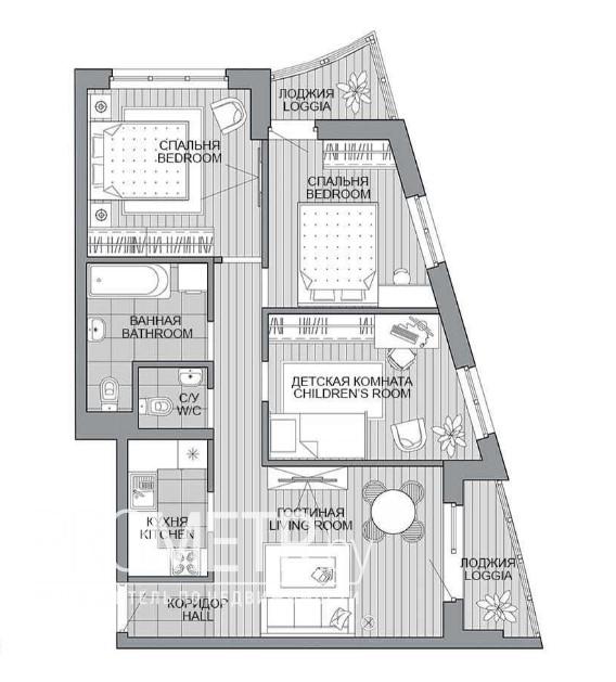 Квартира на момент ввода является однокомнатной с возможностью разделения на комнаты по индивидуальному проекту будущего собственника.