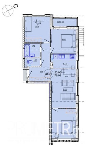 Площадь: 76.02 / 53.06 м²