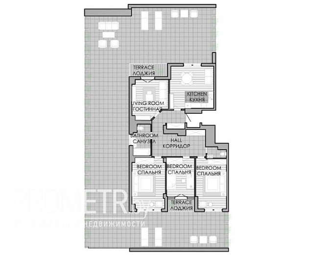 Квартира без отделки с террасой. На момент ввода квартира является однокомнатной с возможностью разделения на комнаты по индивидуальному проекту будущего собственника.
