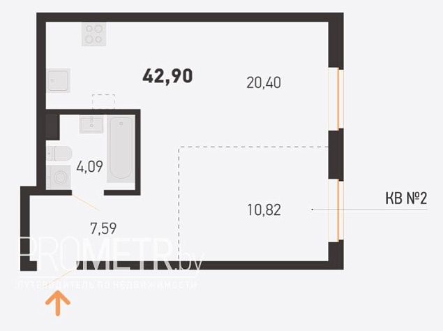 Продается 2-комнатная квартира, 42.9м2, ЖК «Новая Боровая»