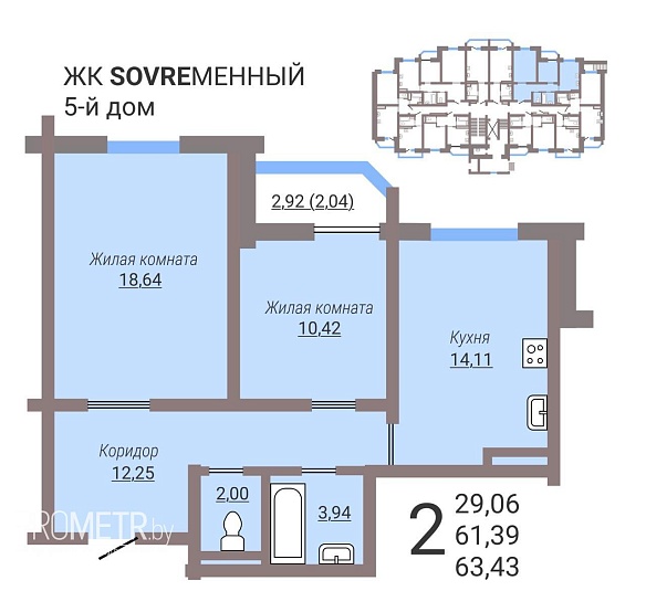 Площадь: 61.39 / м²