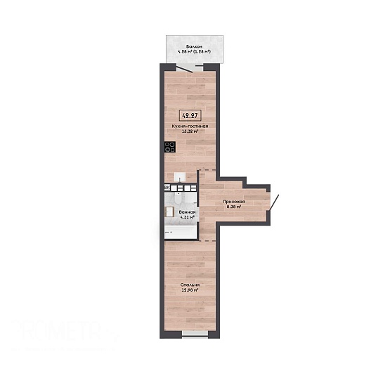 Продается 2-комнатная квартира, 42.27м2, ЖК «Зеленая гавань»