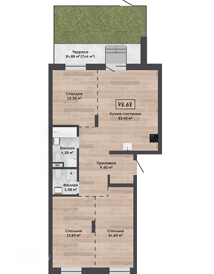 Продается 4-комнатная квартира, 90.29м2, ЖК «Зеленая гавань»