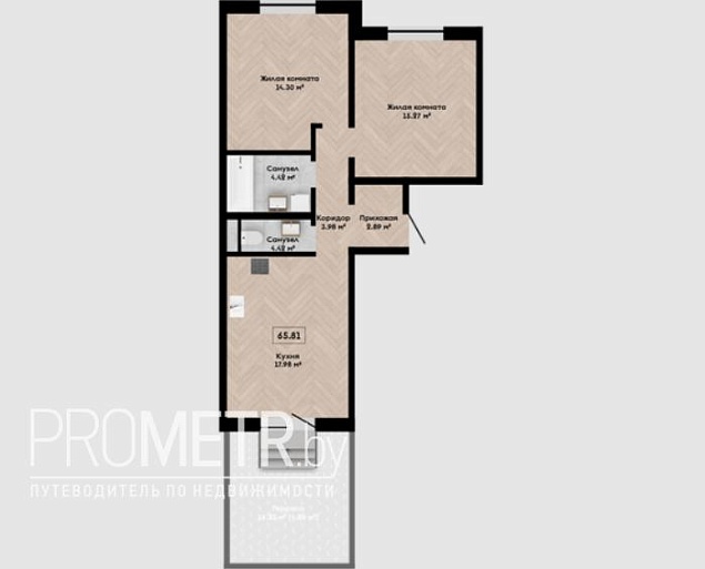 Продается 3-комнатная квартира, 65.8м2, ЖК «Зеленая гавань»