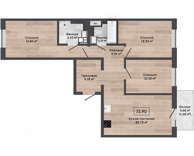 Площадь: 75.9 / м²