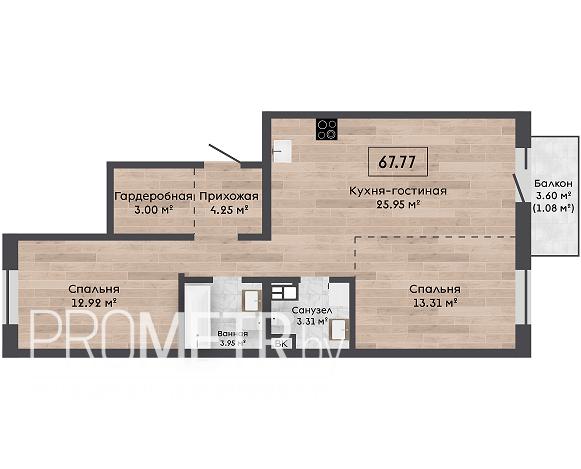 Площадь: 67.77 / м²
