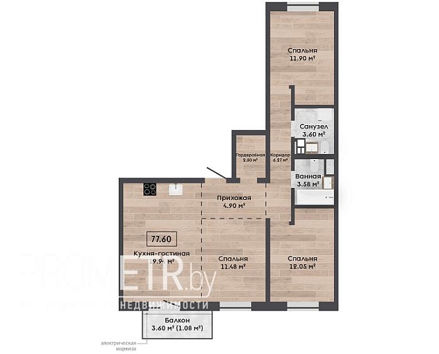 Продается 4-комнатная квартира, 77.6м2, ЖК «Зеленая гавань»