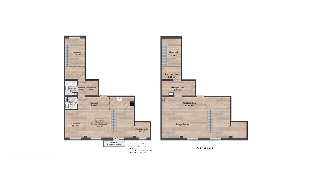 Мансардная квартира с антресольным этажом и вторым светом. Высота помещения от 2,9 до 7.7м.