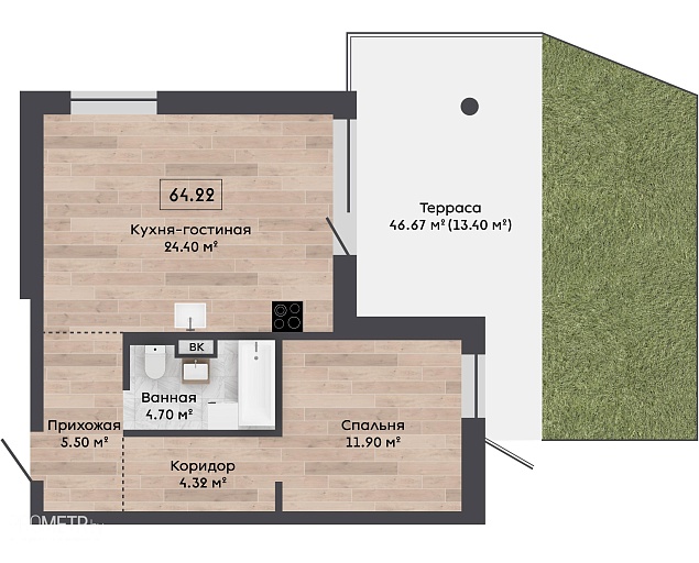 Продается 2-комнатная квартира, 64.22м2, ЖК «Зеленая гавань»