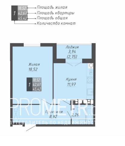 45.2м2, ЖК «Соколиный край»