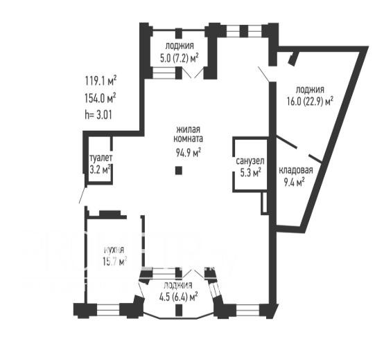 Продается 1-комнатная квартира, 154м2, ЖК Новая Черняховка