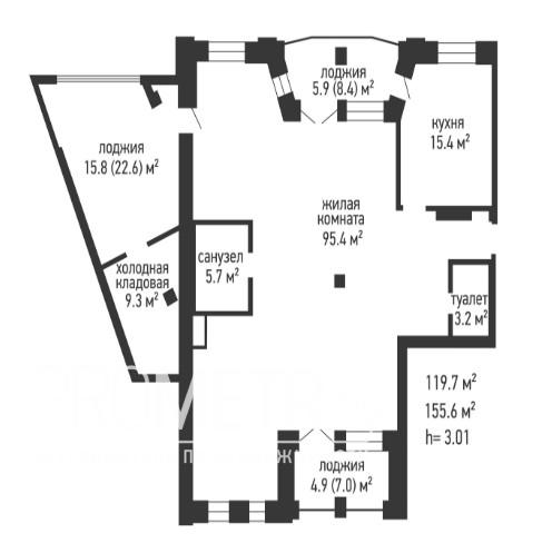 Продается 1-комнатная квартира, 155.6м2, ЖК Новая Черняховка