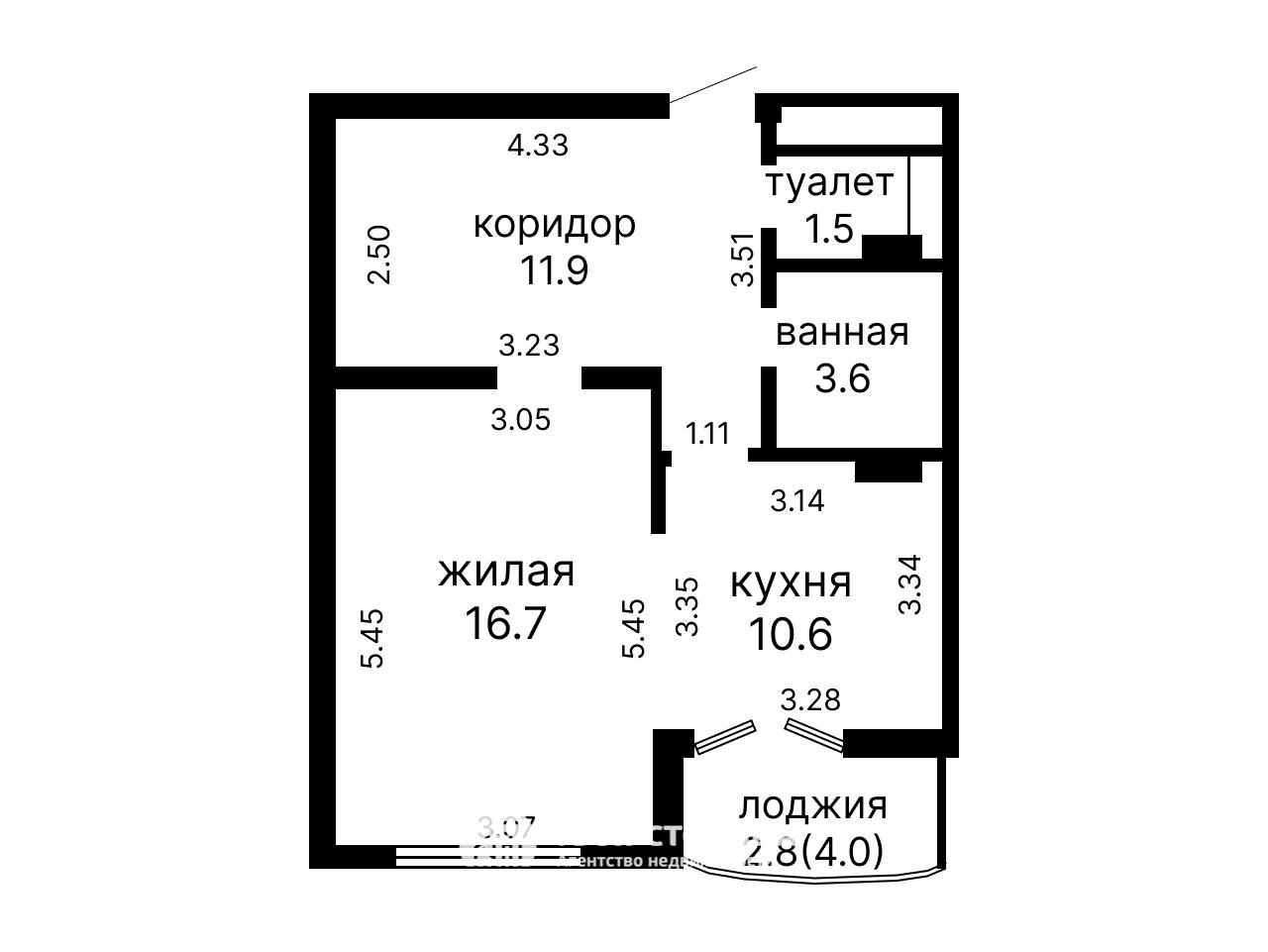 — Площадь: 47.1 по СНБ, общая 44.3 м² (жилая - 16.7 м², кухня -10.6 м²);