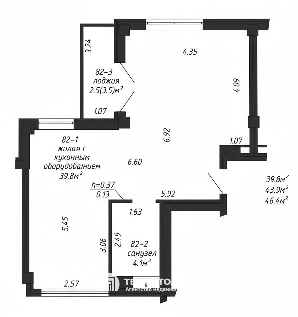 Жилая площадь - 39.8 кв метров.