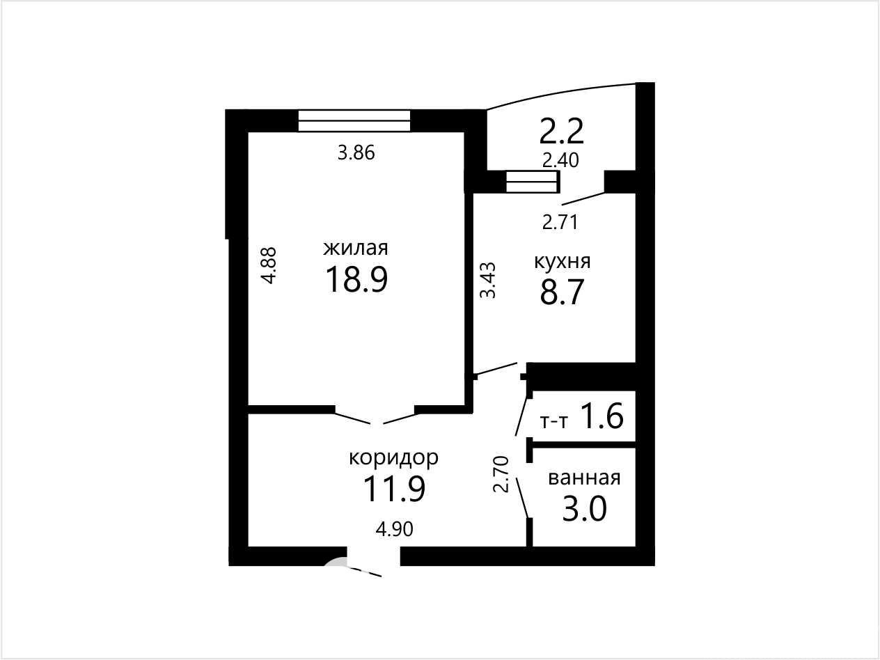 Квартира находится на 4 этаже 9-этажного кирпичного дома, построенного в 2004 году. Общая площадь по СНБ составляет 46.3 кв.м, жилая – 18.9 кв.м, просторная кухня – 8.7 кв.м. Высота потолков 2.51 м создает ощущение простора. Окна выходят на юго-восток, обеспечивая обилие естественного света.