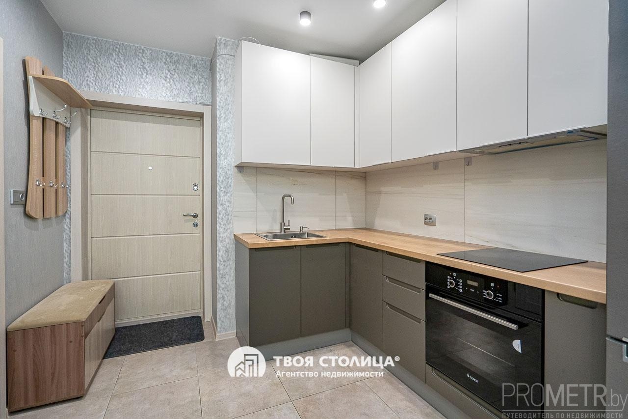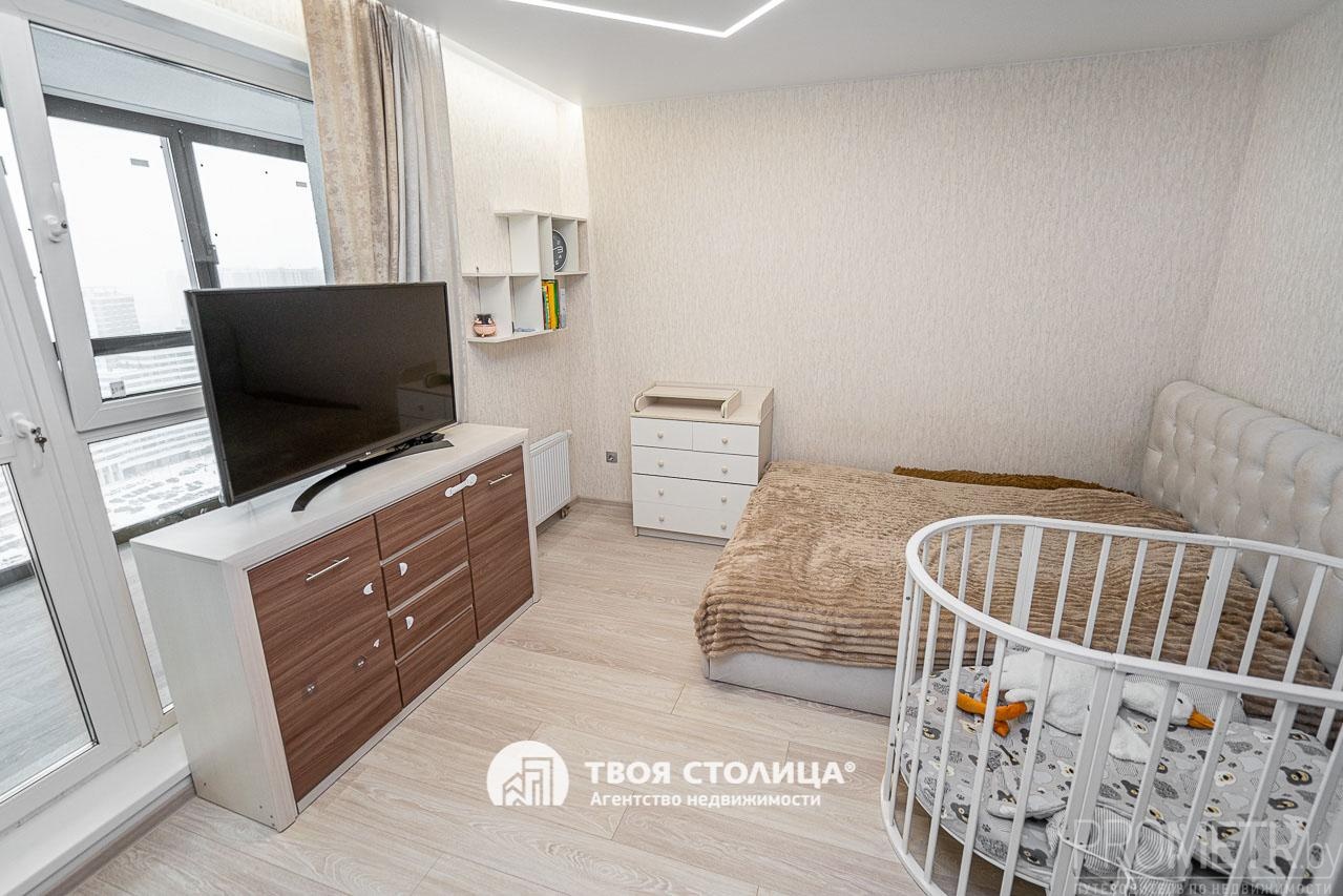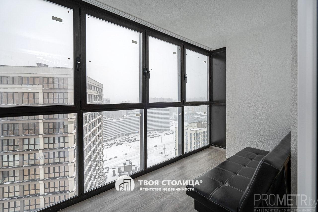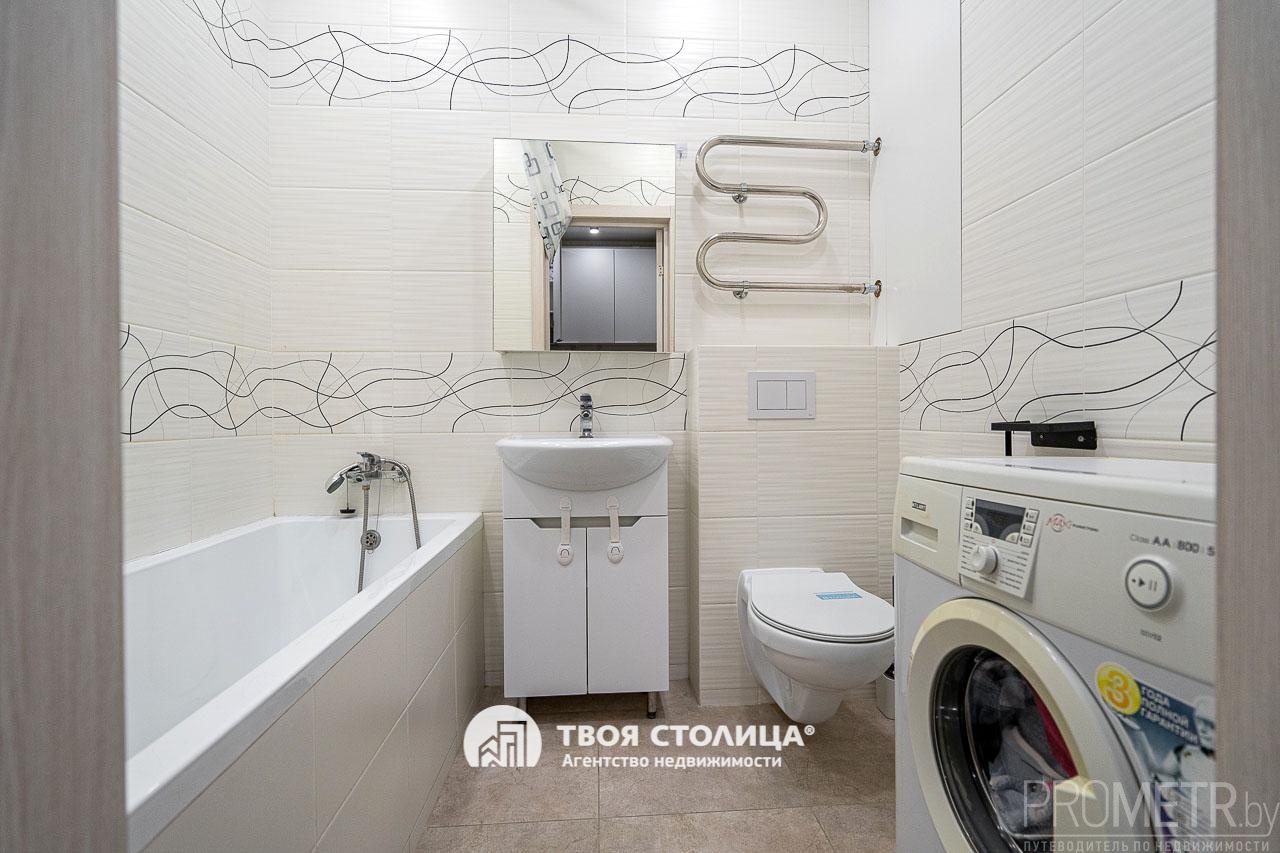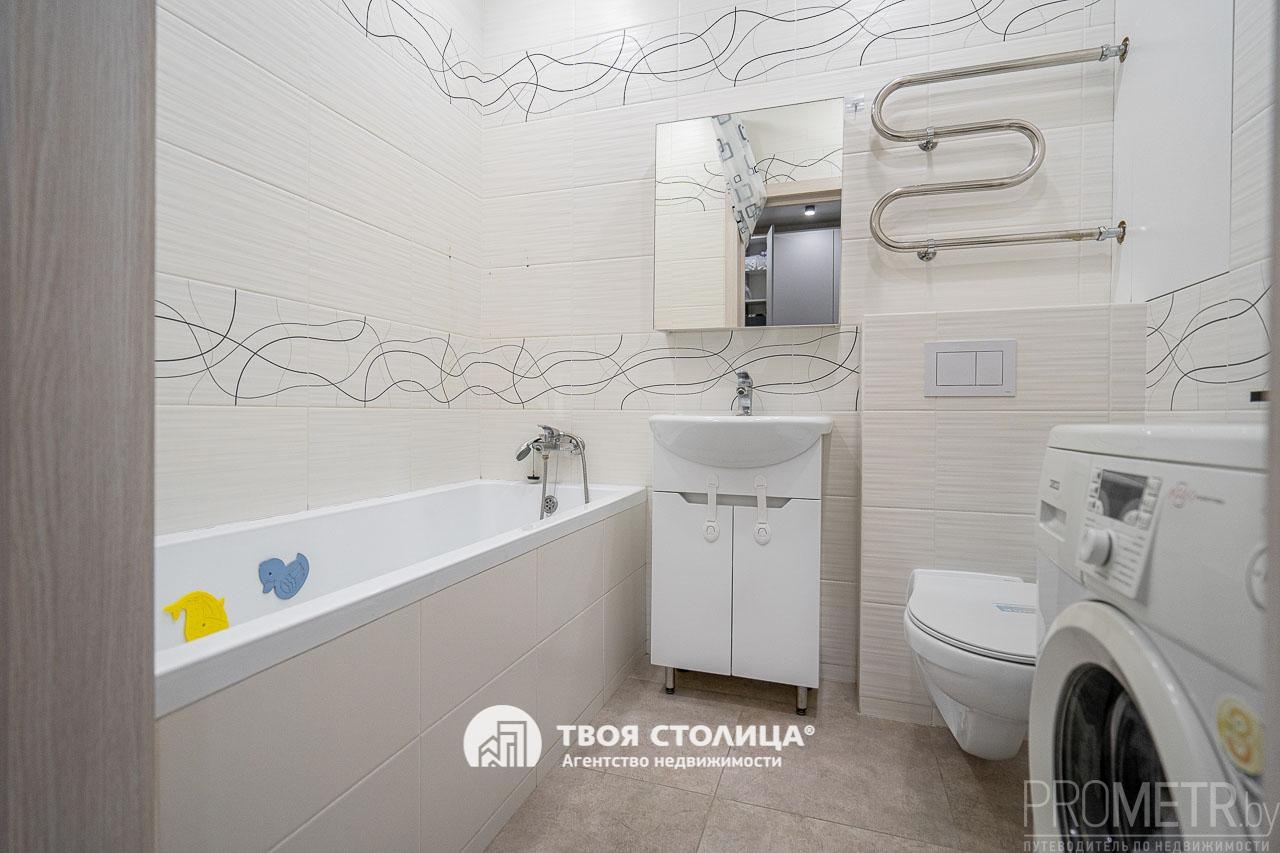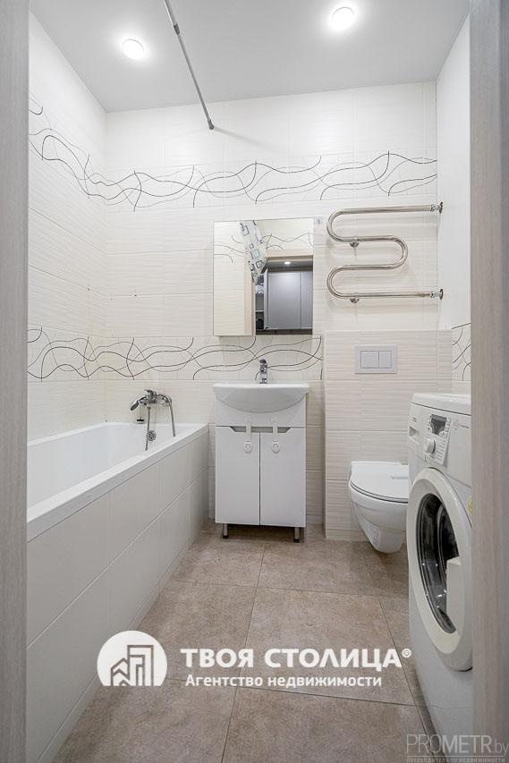 Квартира с современным ремонтом, мебелью и техникой. Полностью готова для проживания. Установлена встроенная кухня с техникой (духовой шкаф, варочная панель, вытяжка), вместительный встроенный шкаф. Санузел облицован современной импортной плиткой, оборудован ванной, подвесным унитазом с инсталляцией, умывальником с полками, зеркалом. Продуманная система освещения помещения. Панорамное остекление.