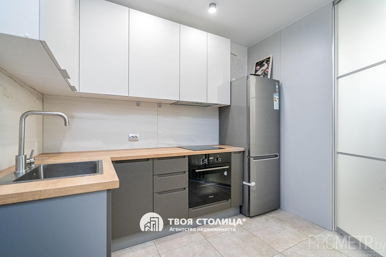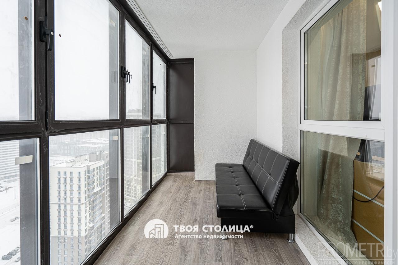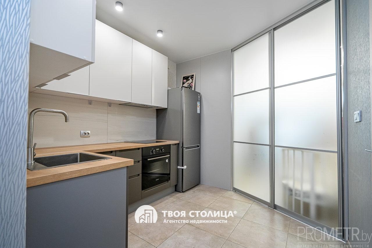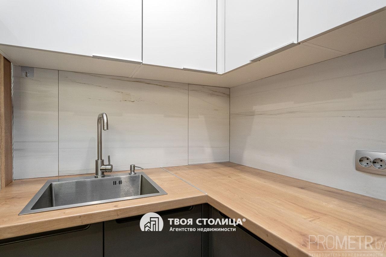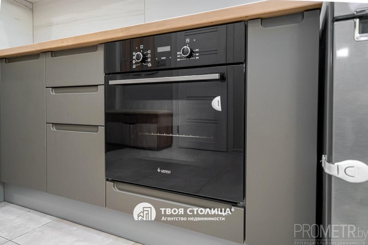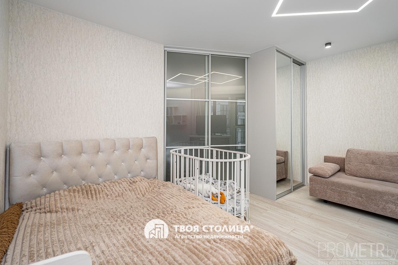 Квартира с современным ремонтом, мебелью и техникой. Полностью готова для проживания. Установлена встроенная кухня с техникой (духовой шкаф, варочная панель, вытяжка), вместительный встроенный шкаф. Санузел облицован современной импортной плиткой, оборудован ванной, подвесным унитазом с инсталляцией, умывальником с полками, зеркалом. Продуманная система освещения помещения. Панорамное остекление.