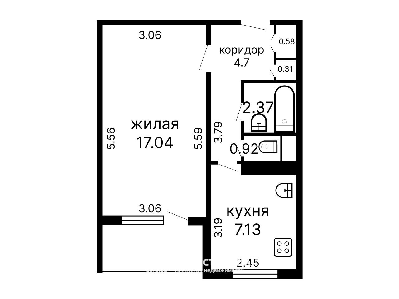 Общая площадь квартиры 33.1 кв.м. Практичная планировка: жилая комната 17,04 кв.м. с выходом на застекленную лоджию, кухня 7,13 кв.м., раздельный санузел. Квартира расположена на 7 этаже.