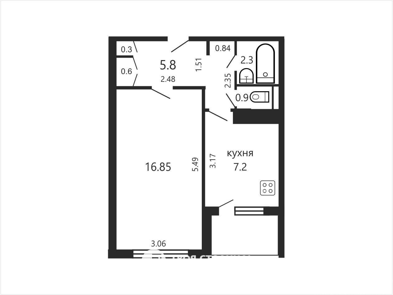 Высокий этаж — тишина и красивый вид. Удобное расположение, развитая инфраструктура — всё для комфортной жизни!