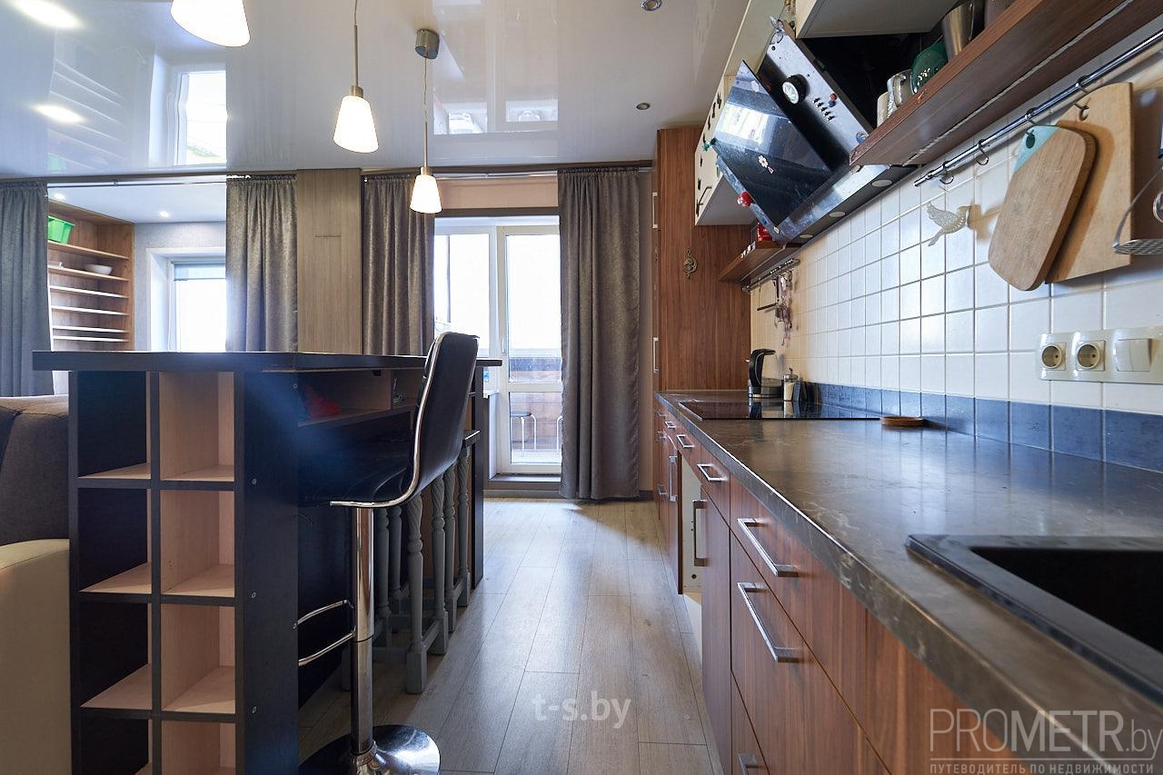 Встроенная кухня с бытовой техникой с выходом на лоджию.