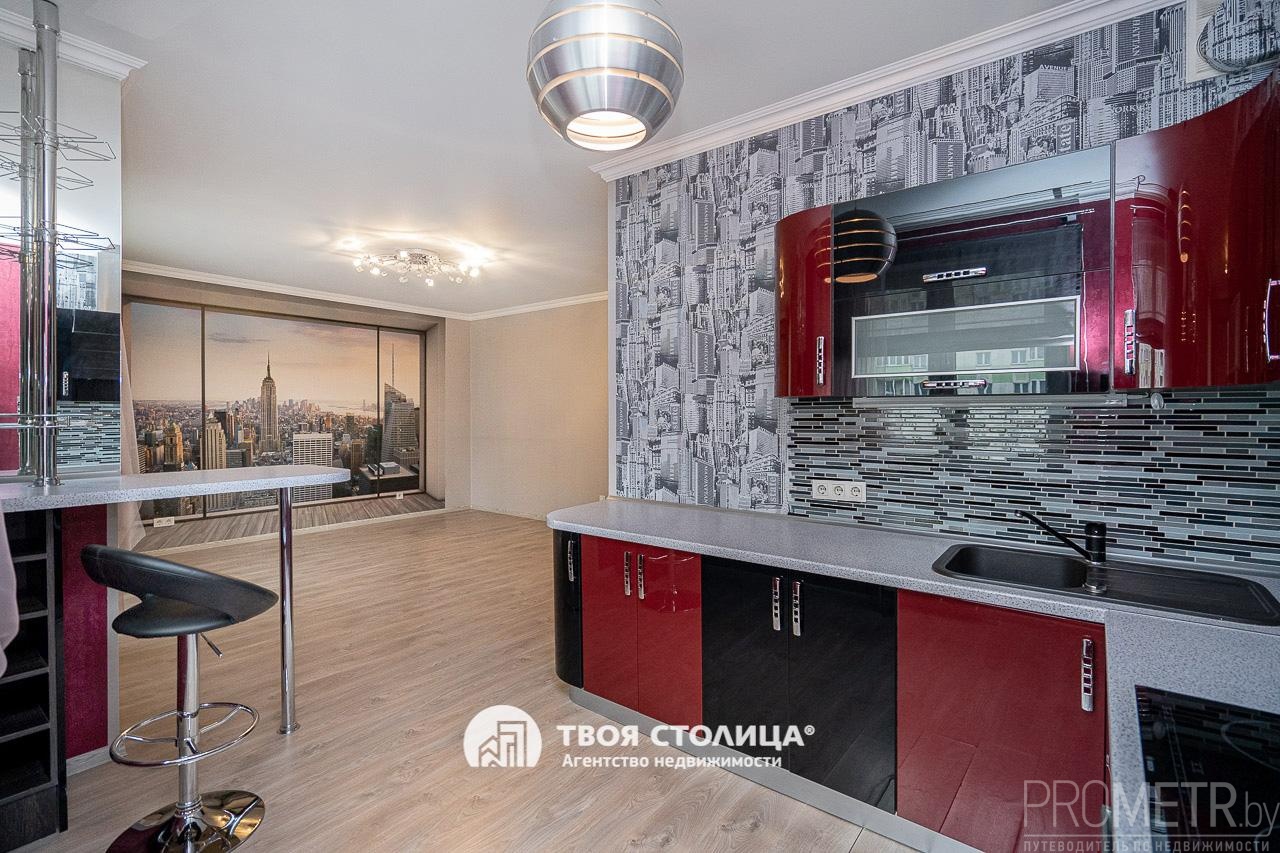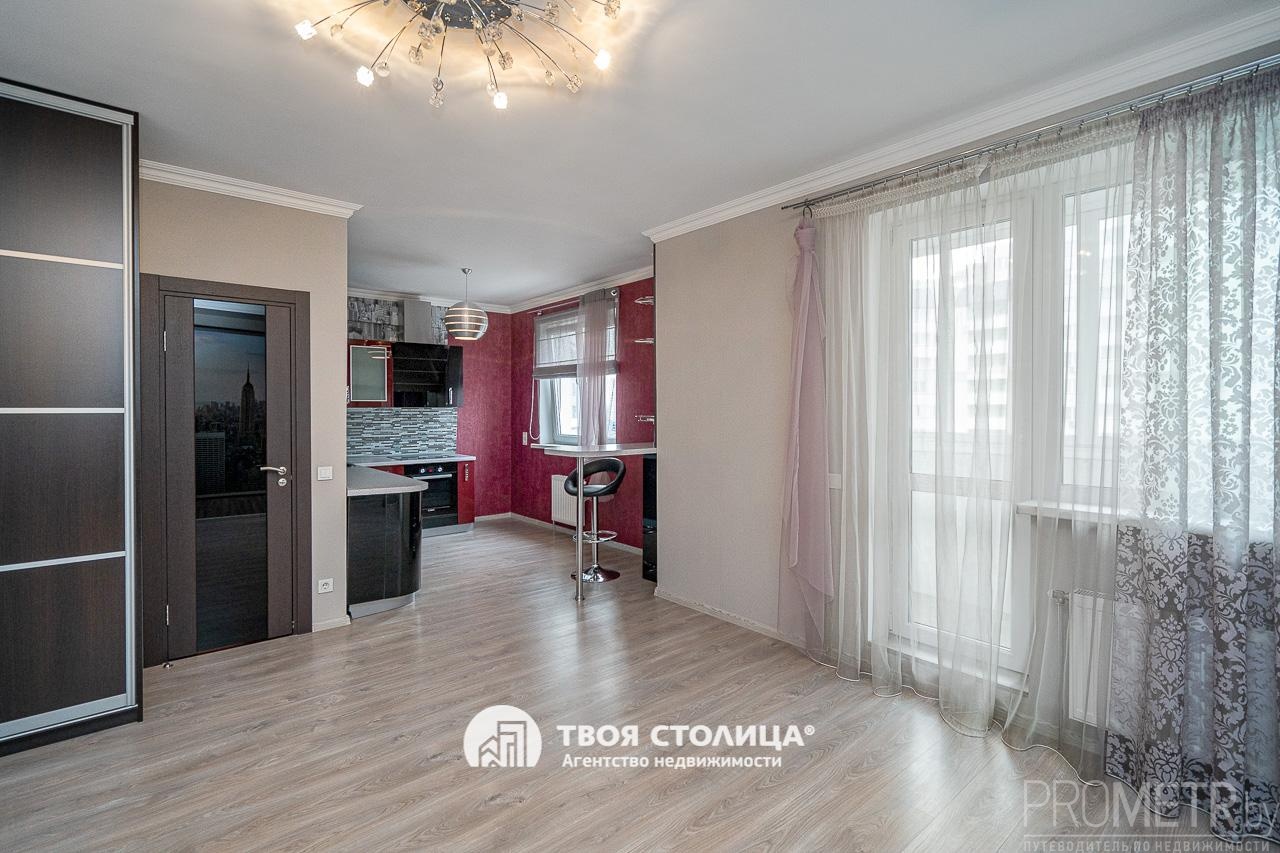 Квартира готова к проживанию. Встроенная кухня с бытовой техникой. Шкаф-купе в прихожей. Пол - ламинат, плитка. Просторная лоджия застеклена. Металлическая входная дверь.